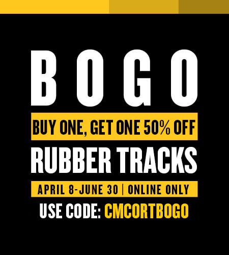 From April 8 through June 30, you can buy one Rubber Track and get one 50% off. Offer includes heavy duty and general duty tracks. Offer only available for online orders. Upgrade your non-Cat machine with Cat rubber tracks. Built for versatility, they’re designed to fit a wide range of machines. For a limited time use promo code CMCORTBOGO at checkout.