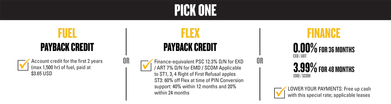 Offer valid through 6/30/26 on select new Cat equipment. Finance and published rate are subject to credit approval through Cat financial. Not all applicants will qualify. Offer may change without prior notice and additional terms and conditions may apply.