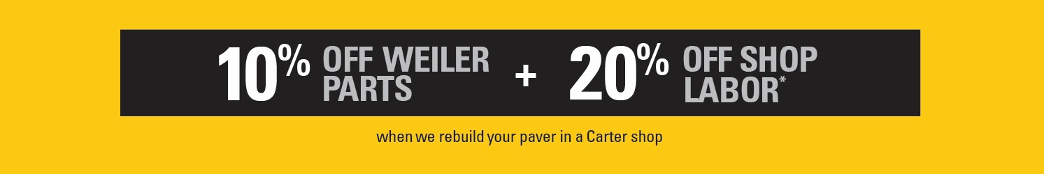 *Offer expires 3/31/2026. Applicable models for Paver Saver rebuild program include Cat Cold Planers, Compactors (Soil, Pneumatic, Asphalt, & Utility), Pavers and Rotary Mixers, as well as Weiler Pavers and Remixing Transfer Vehicles. Parts minimum of $1,000 is required. Some exclusions may apply. Contact your Product Support Representative for more details. **Financing rates and terms are subject to change.